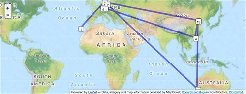 旅行虫的目地当然是到处溜达啦,上图就是这个旅行虫目前到过的地方。希望下一个寻宝者能带它继续上路,畅游世界,沿途留下更多美好的回忆!文章开头的照片拼图就是@A+M12345 带着它沿途拍的。