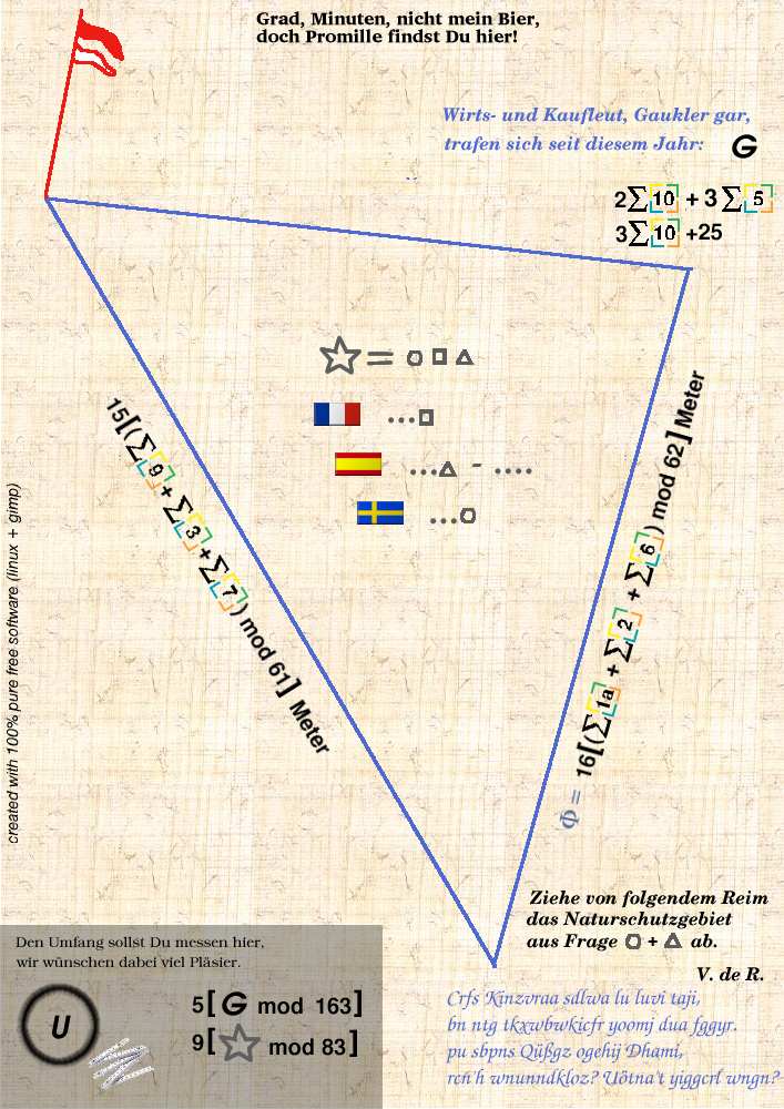 在那个还没有智能手机、没有人工智能、搜索引擎还很原始的年代,这对藏家就扔出了:10道德语谜题 + 3张藏宝图。 藏点描述里直白地写着:“由于难度异常之高,第一位找到的人将获得 50 欧元 奖励。”