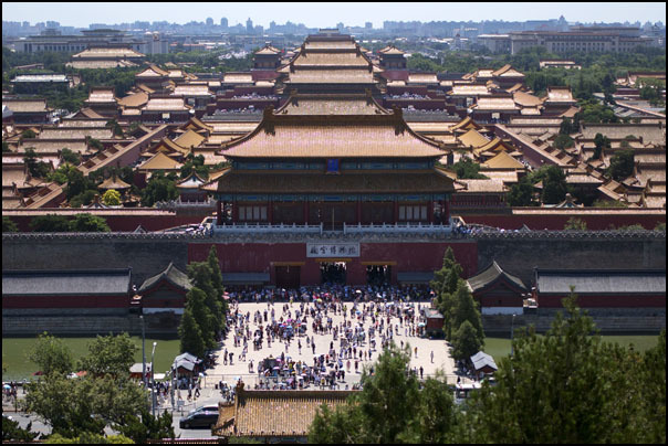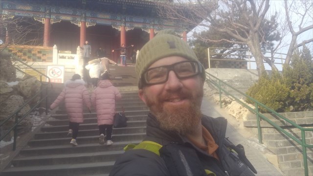 Finally, I turned my attention to the mountain at the center of the park. Many paths meandered up the steep rock covered slope. I was in awe of the massive feat it must have taken to literally “Move a Mountain” and pushed hard, climbing to the top, my lungs burning with the cool morning air. I made it to the top where people posed for pictures and stood surveying the scene in all directions. I was amazed when I looked out to the view of the south. The forbidden city laid out in such clear perspective. I had planned on visiting it today, but after seeing so many buildings and the scale of it, thirty minutes or a few hours just wouldn’t have served it justice and took a few extra moments enjoying it from this vantage point before looking for the requirements of the virtual cache.